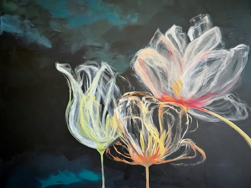 Ich male in verschiedenen Abständen, probiere gerne neue Techniken aus und lasse Bilder wachsen.